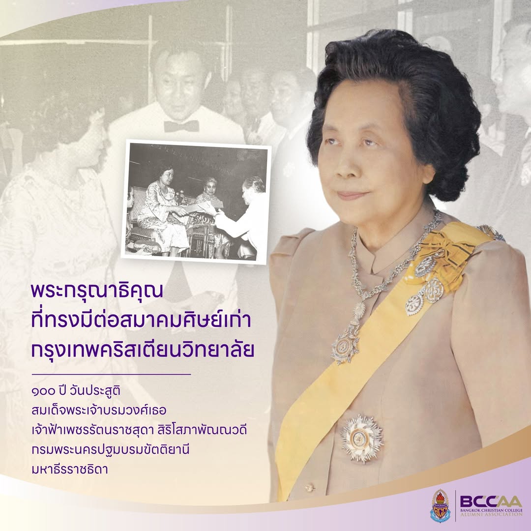 สมาคมศิษย์เก่ากรุงเทพคริสเตียนวิทยาลัย น้อมรำลึกถึงพระกรุณาธิคุณแห่งสมเด็จพระเจ้าบรมวงศ์เธอ เจ้าฟ้าเพชรรัตนราชสุดา สิริโสภาพัณณวดี กรมพระนครปฐมบรมขัตติยานี มหาธีรราชธิดา ในอภิลักขิตสมัย 100 ปี วันประสูติ 24 พฤศจิกายน 2568
