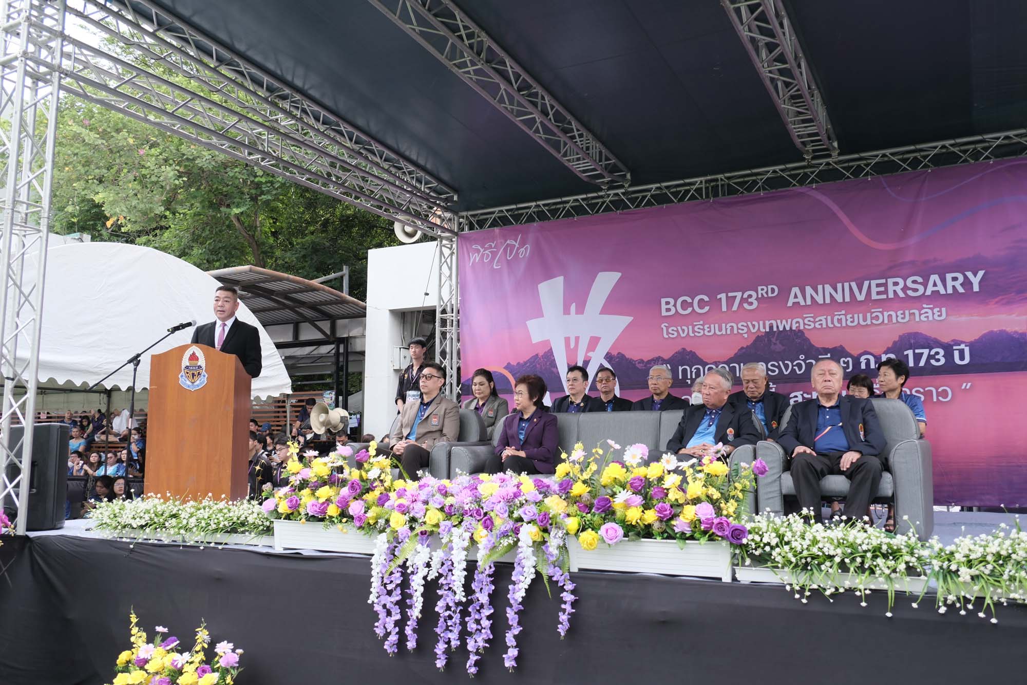 ภาพบรรยากาศ พิธีเปิด งานวันคล้ายวันเกิดโรงเรียนกรุงเทพคริสเตียนวิทยาลัย ครบรอบ 173 ปี ภายใต้ชื่องาน "ทุกความทรงจำดี ๆ ก.ท 173 ปี ภาพเหล่านี้สะท้อนเรื่องราว"