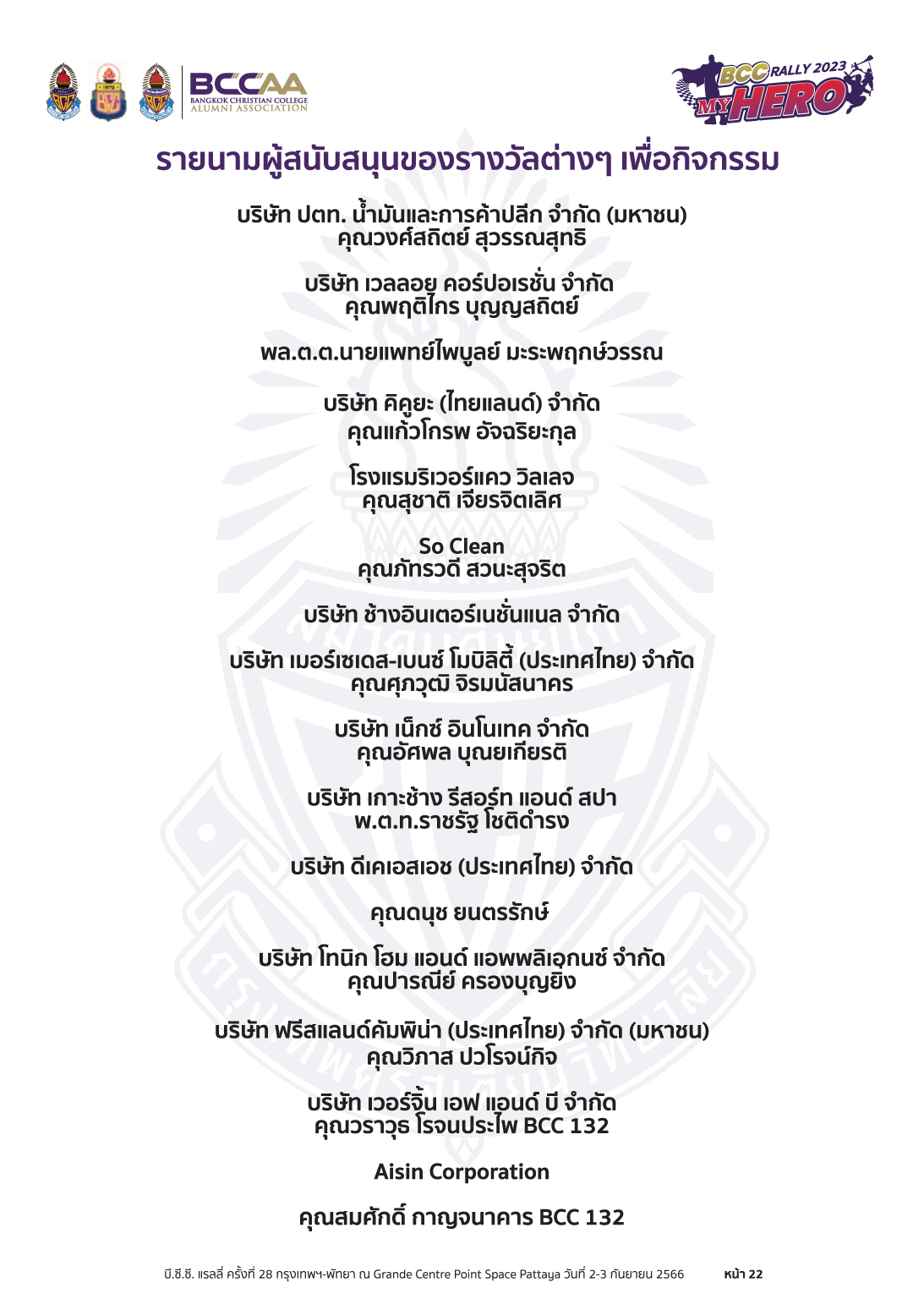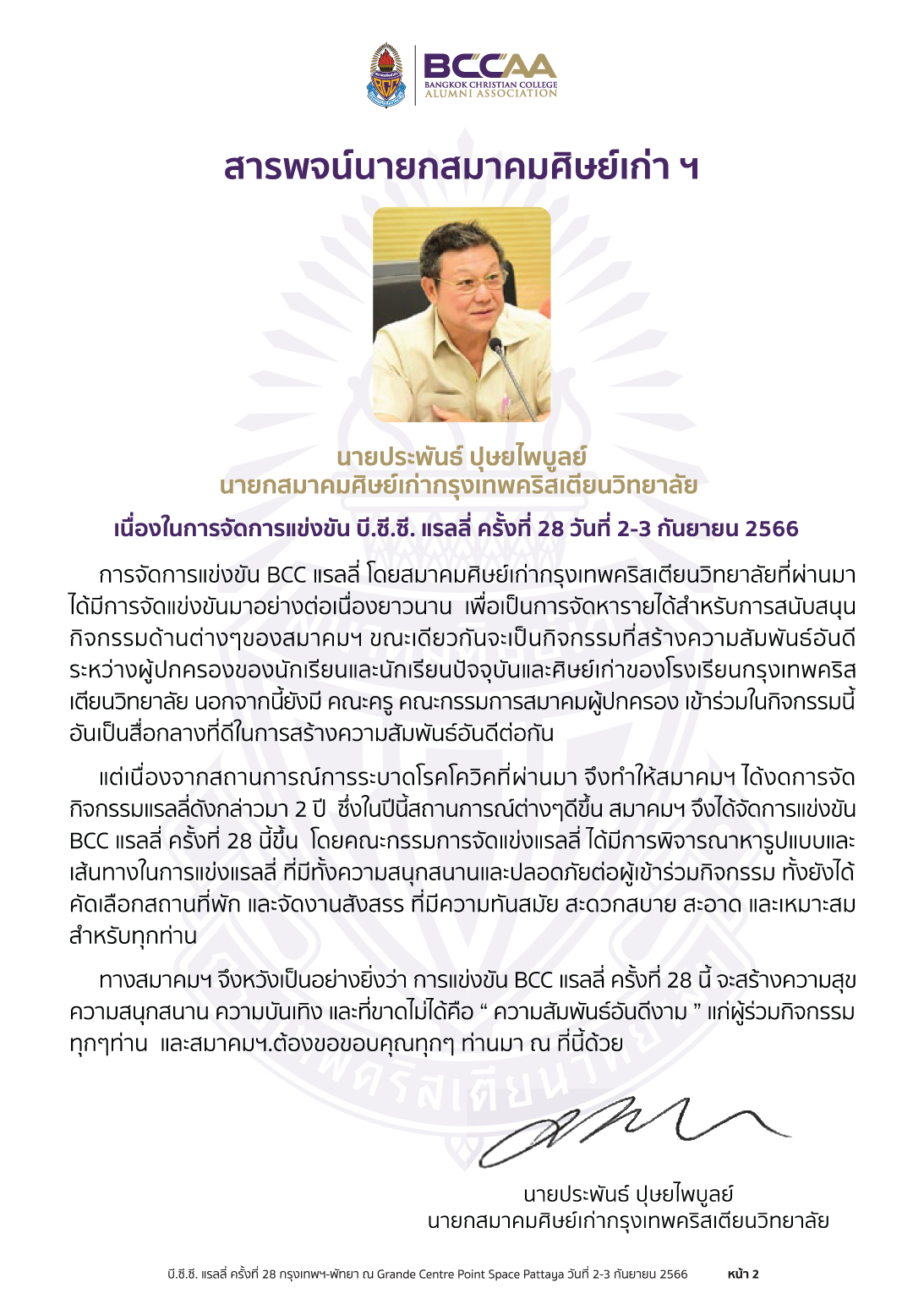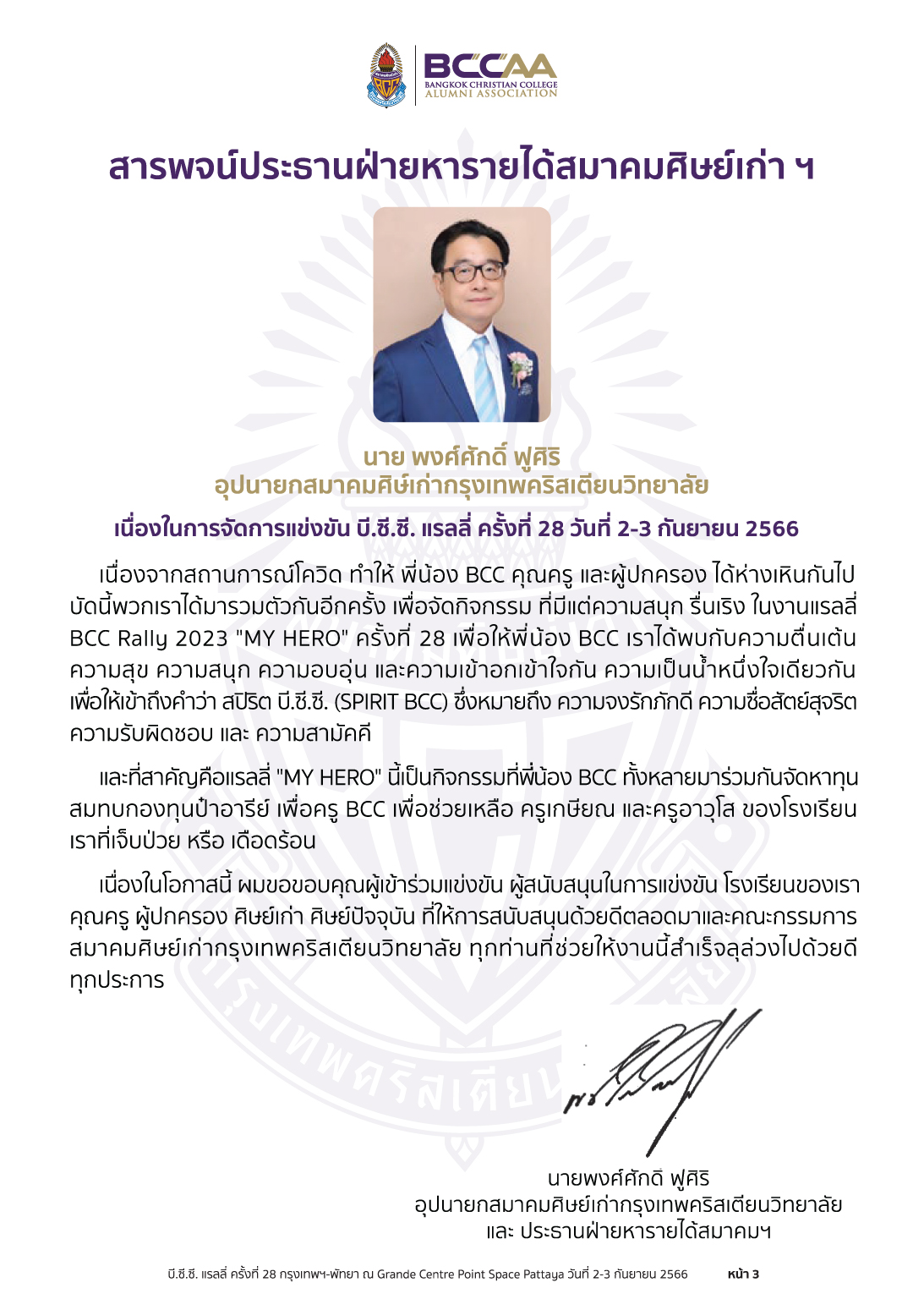 #BCCRally2023 #สมาคมศิษย์เก่ากรุงเทพคริสเตียนฯ #BCCAA #BCC #PTA #BCCAAPR