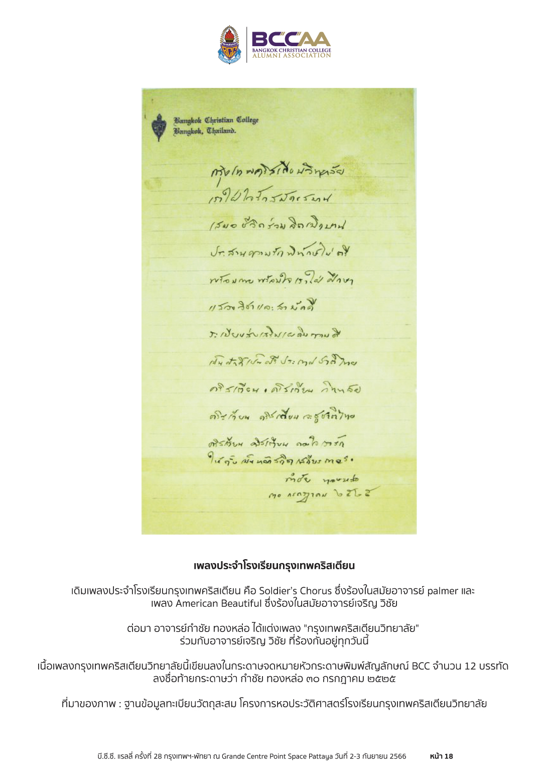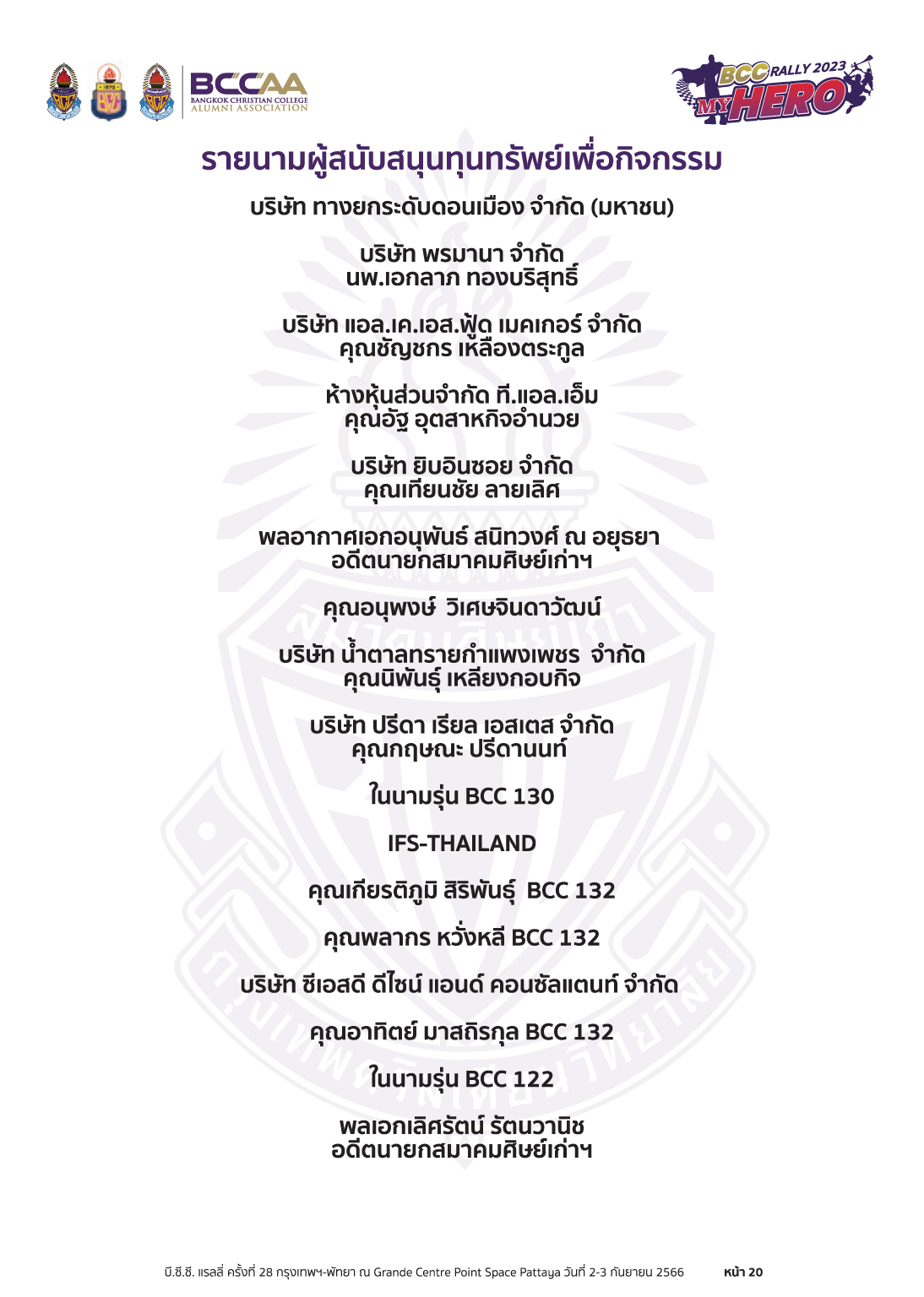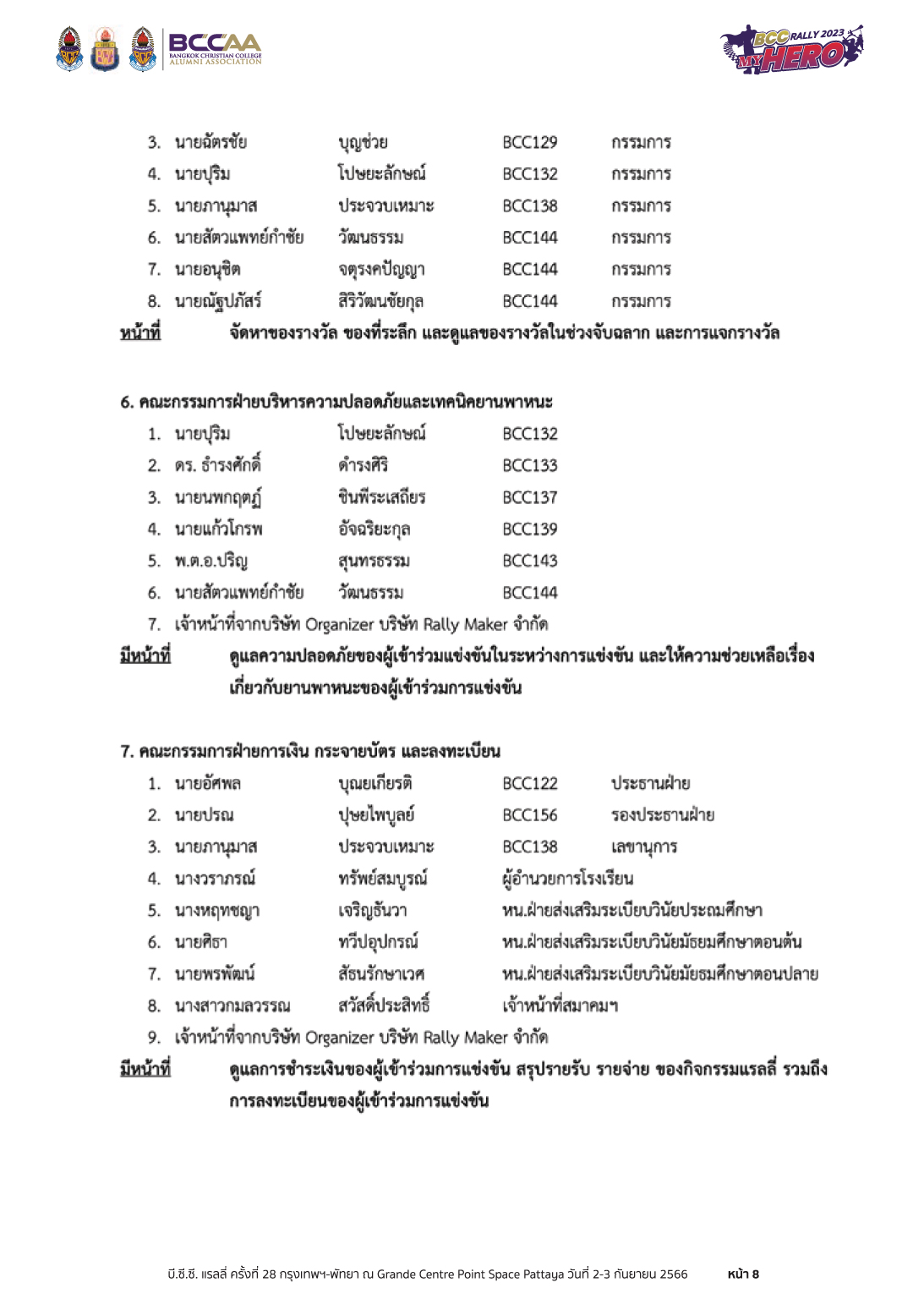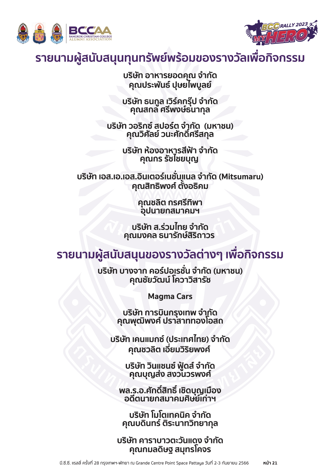 #BCCRally2023 #สมาคมศิษย์เก่ากรุงเทพคริสเตียนฯ #BCCAA #BCC #PTA #BCCAAPR