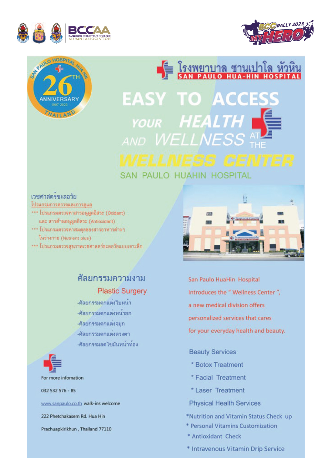 และที่สมาคมศิษย์เก่าฯ โทร 0894944055 หรือ ติดต่อผ่าน ID LINE ID : BCCAA ...แล้วพบกัน...