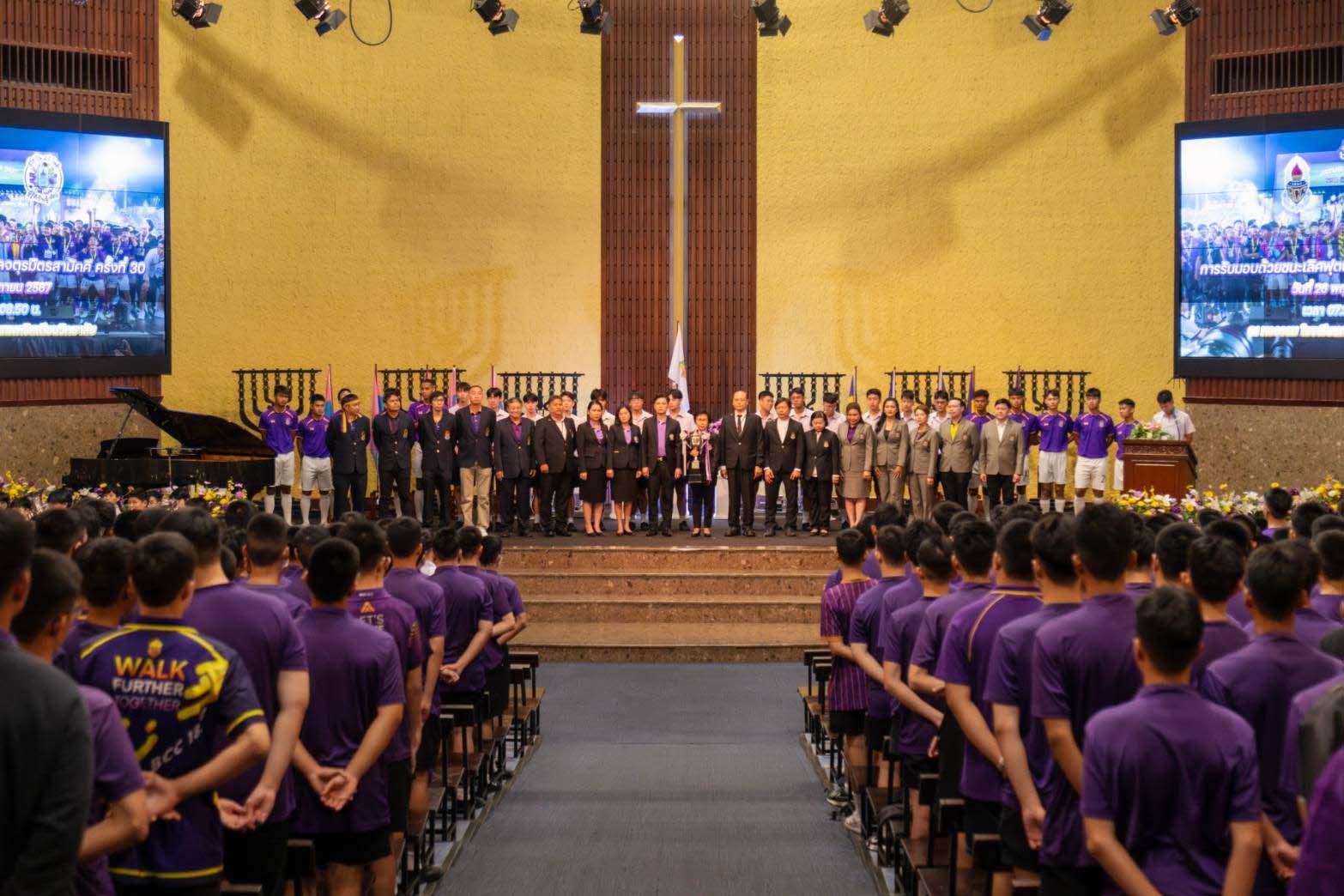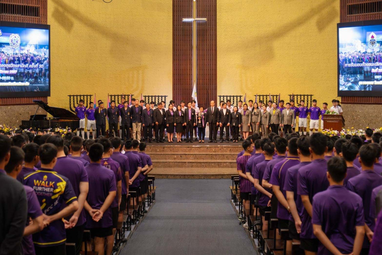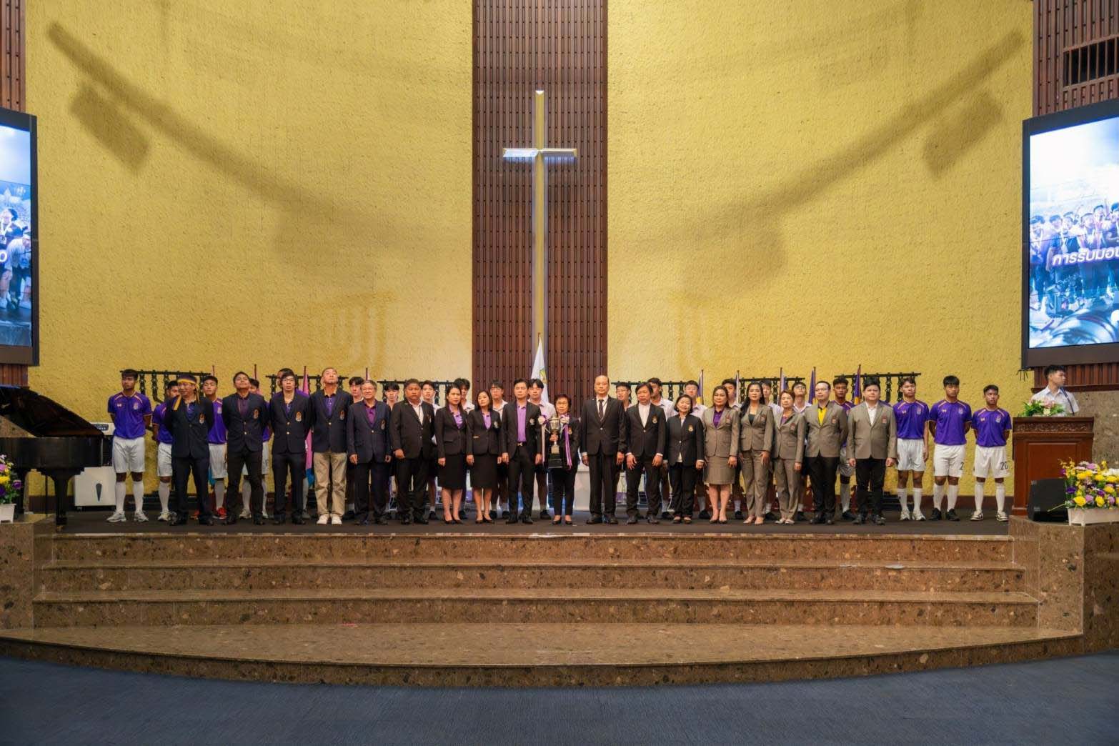 We are the CHAMPIONS ภาพบรรยากาศ พิธีรับมอบถ้วยรางวัลชนะเลิศ ฟุตบอลจตุรมิตร ครั้งที่ 30