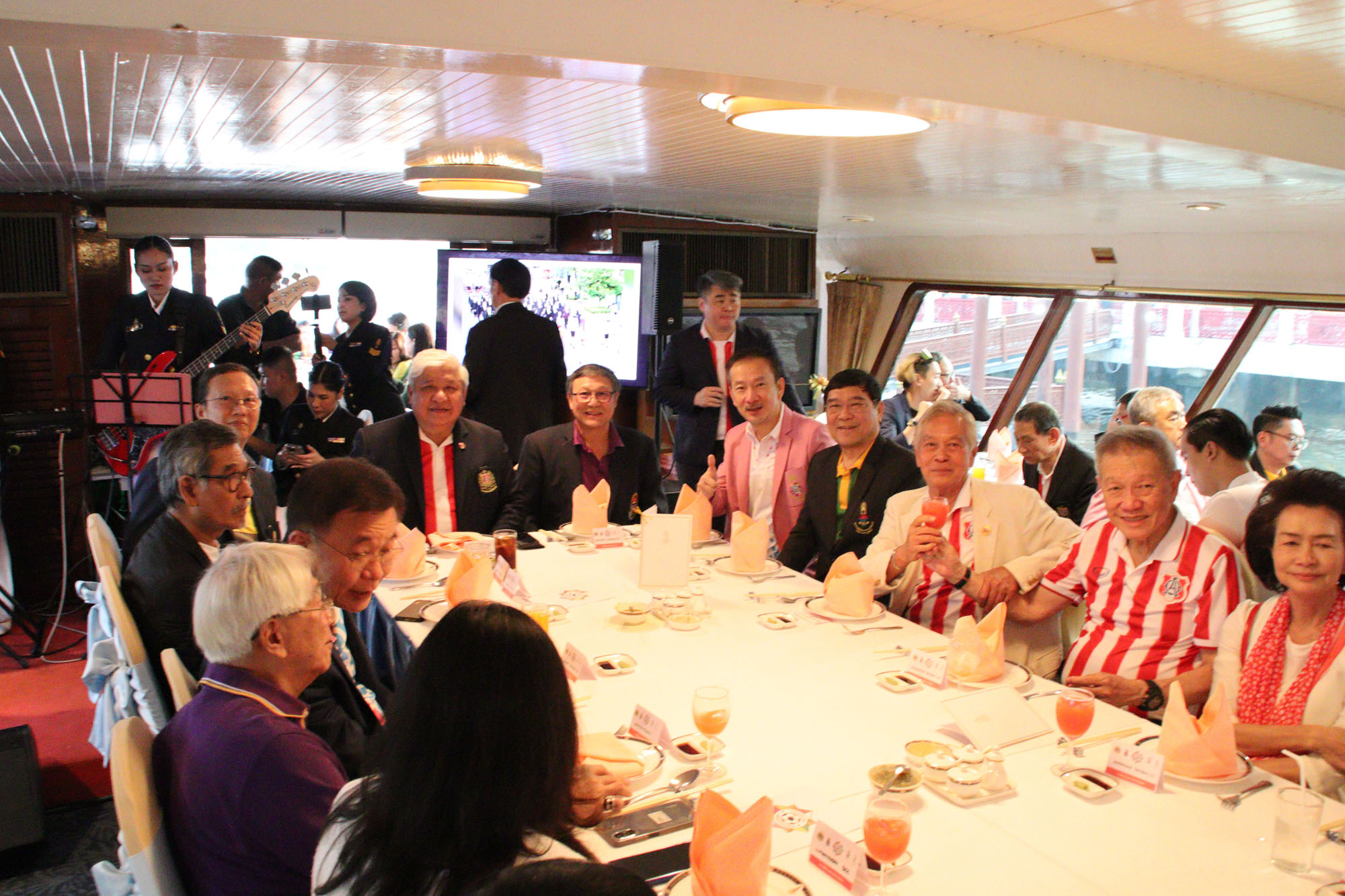 โดยสมาคมอัสสัมชัญ เป็นเจ้าภาพจัดงานเลี้ยงด้วยการล่องเรือไปตามลำน้ำเจ้าพระยา  ทางสมาคมศิษย์เก่ากรุงเทพคริสเตียนวิทยาลัย โดยนายกสมาคมฯ นายประพันธ์ ปุษยไพบูลย์ และกรรมการสมาคมฯ ขอขอบคุณ ศิษย์เก่าอดีตกรรมการบริหารสมาคมฯ และอาจารย์วราภรณ์ ทรัพย์สมบูรณ์ รักษาการณ์ผู้อำนวยการโรงเรียนกรุงเทพคริสเตียนฯ พร้อมคณะผู้บริหาร ที่ให้เกียรติมาร่วมในงานเลี้ยงครั้งนี้ อนึ่ง ก่อนที่คณะกรรมการบริหารทั้ง 4 สมาคม จะลงเรือ ณ ท่าเทียบเรือ หอประชุมกองทัพเรือ ได้ร่วมกันไปกราบขอพรจากพระพุทธรูปประธาน (สมัยกรุงศรีอยุธยา) และสักการะพระบรมรูปสมเด็จพระตากสินมหาราช ในโบสถ์น้อย วัดอรุณราชวราราม เพื่อความเป็นสิริมงคล