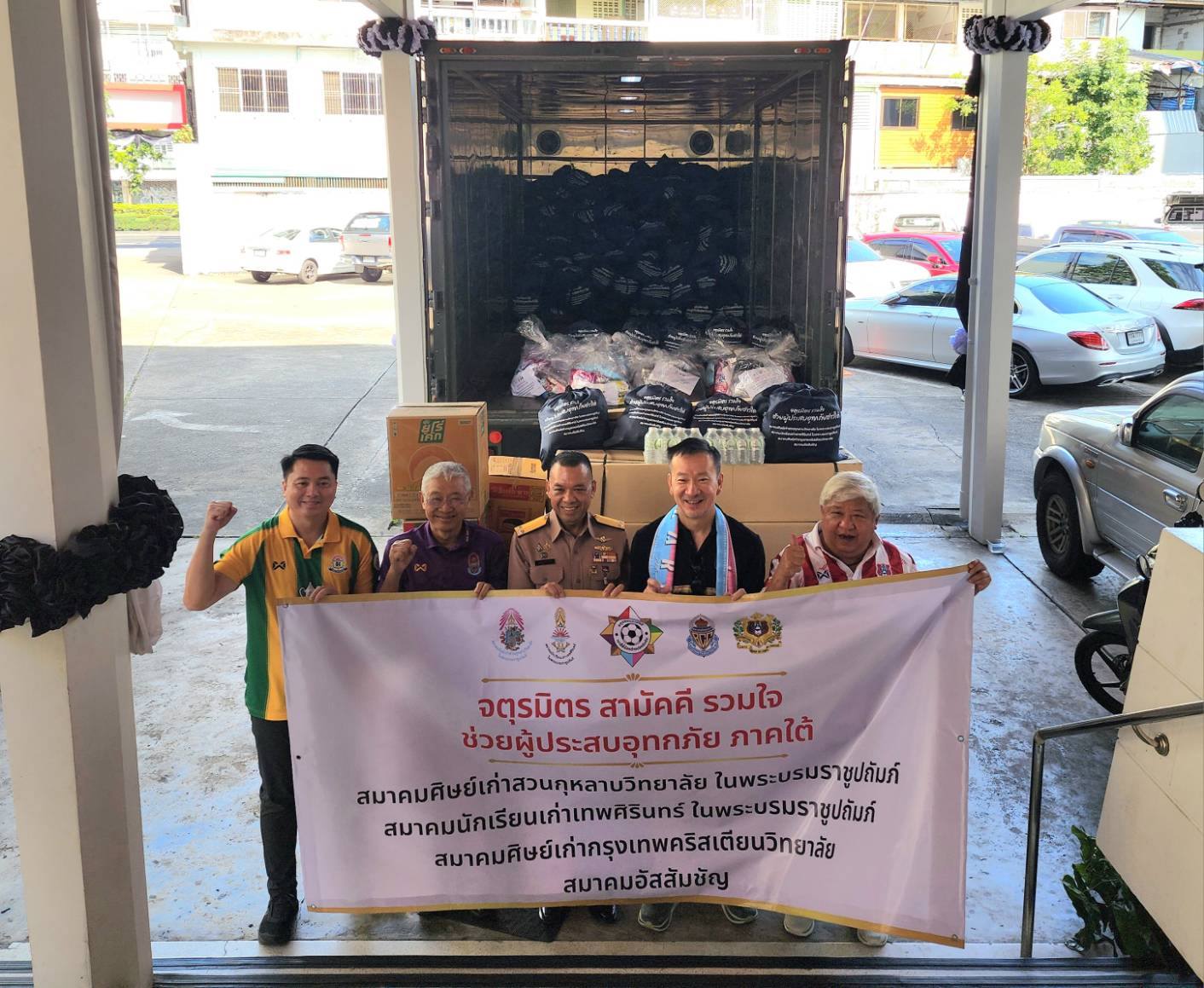 เมื่อวันอาทิตย์ที่ 7 ธันวาคม 2568 และในวันเสาร์ที่ 13 ธันวาคม 2568 ณ สมาคมอัสสัมชัญ ถนนพระราม 4 โดย นายกสมาคมศิษย์เก่า และนักเรียนเก่าในเครือจตุรมิตร ทั้ง 4 สถาบัน ประกอบด้วย นายสิทธิ ภาณุพัฒนพงศ์ นายกสมาคมนักเรียนเก่าเทพศิรินทร์ ในพระบรมราชูปถัมภ์ นายชัยวัฒน์ โควาวิสารัช นายกสมาคมศิษย์เก่าสวนกุหลาบวิทยาลัย ในพระบรมราชูปถัมภ์ นายสุเมธ สุรบถโสภณ นายกสมาคมศิษย์เก่ากรุงเทพคริสเตียนวิทยาลัย และ พลเรือเอก ประพฤติพร อักษรมัต นายกสมาคมอัสสัมชัญ พร้อมผู้แทนศิษย์เก่าและนักเรียนเก่า ในเครือจตุรมิตร ร่วมส่งมอบ โดยมี พลเรือตรี สยุมภู ศิริรังษี ผู้อำนวยการสำนักกิจการพลเรือน กรมกิจการพลเรือนทหาร เป็นผู้แทนกองทัพเรือ รับมอบ ถุงสิ่งของจำนวน 500 ถุง เพื่อนำแจกจ่ายผู้ประสบอุทกภัย อ.หาดใหญ่ จ.สงขลา ต่อไป