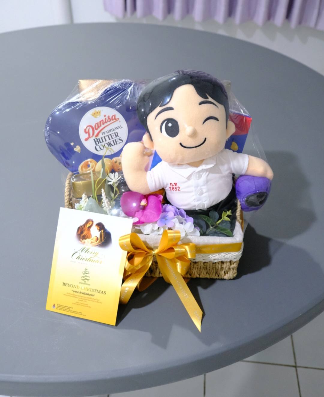 ผู้แทนจาก รร.กรุงเทพคริสเตียนวิทยาลัย นำโดย อ.สุธีร์ หนูเลี่ยม ผู้บริหารโรงเรียน ได้นำกระเช้าของขวัญ มามอบให้ นายสหรัตน์ เพ็ญกุล อุปนายกสมาคมฯ และได้นำ นักร้อง นักดนตรี ประจำโรงเรียน พร้อมทั้ง ทีมนักกีฬาฟุตบอลของโรงเรียน มาร่วมกันร้องเพลง อวยพรคริสต์มาส เพื่อแสดงความขอบคุณ สมาคมศิษย์เก่ากรุงเทพคริสเตียนวิทยาลัย