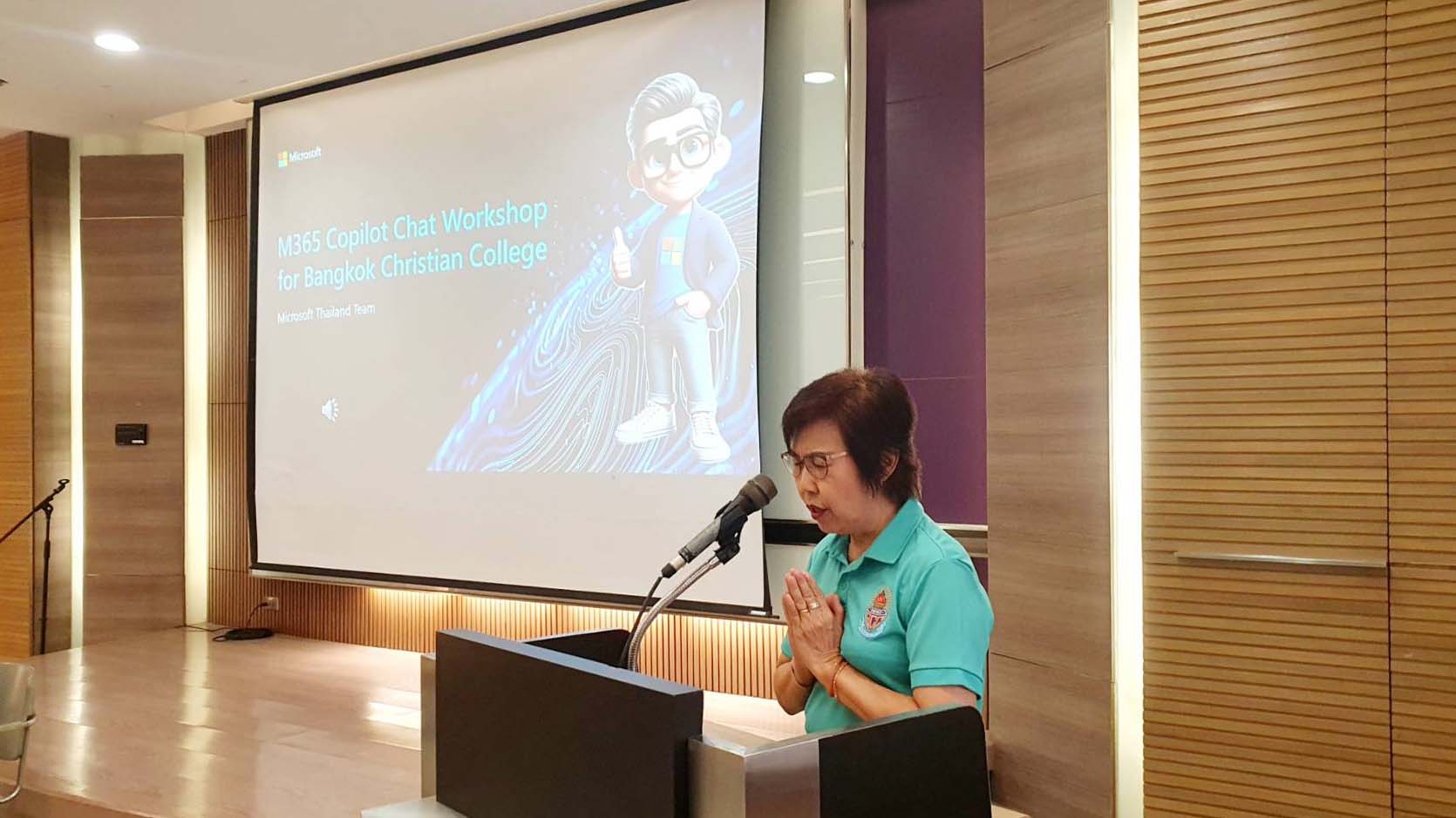 ภาพบรรยากาศ การอบรมเชิงปฏิบัติการในหัวข้อ “Microsoft 365 Copilot Chat สำหรับบุคลากรด้านการศึกษา” ณ โรงเรียนกรุงเทพคริสเตียนวิทยาลัย