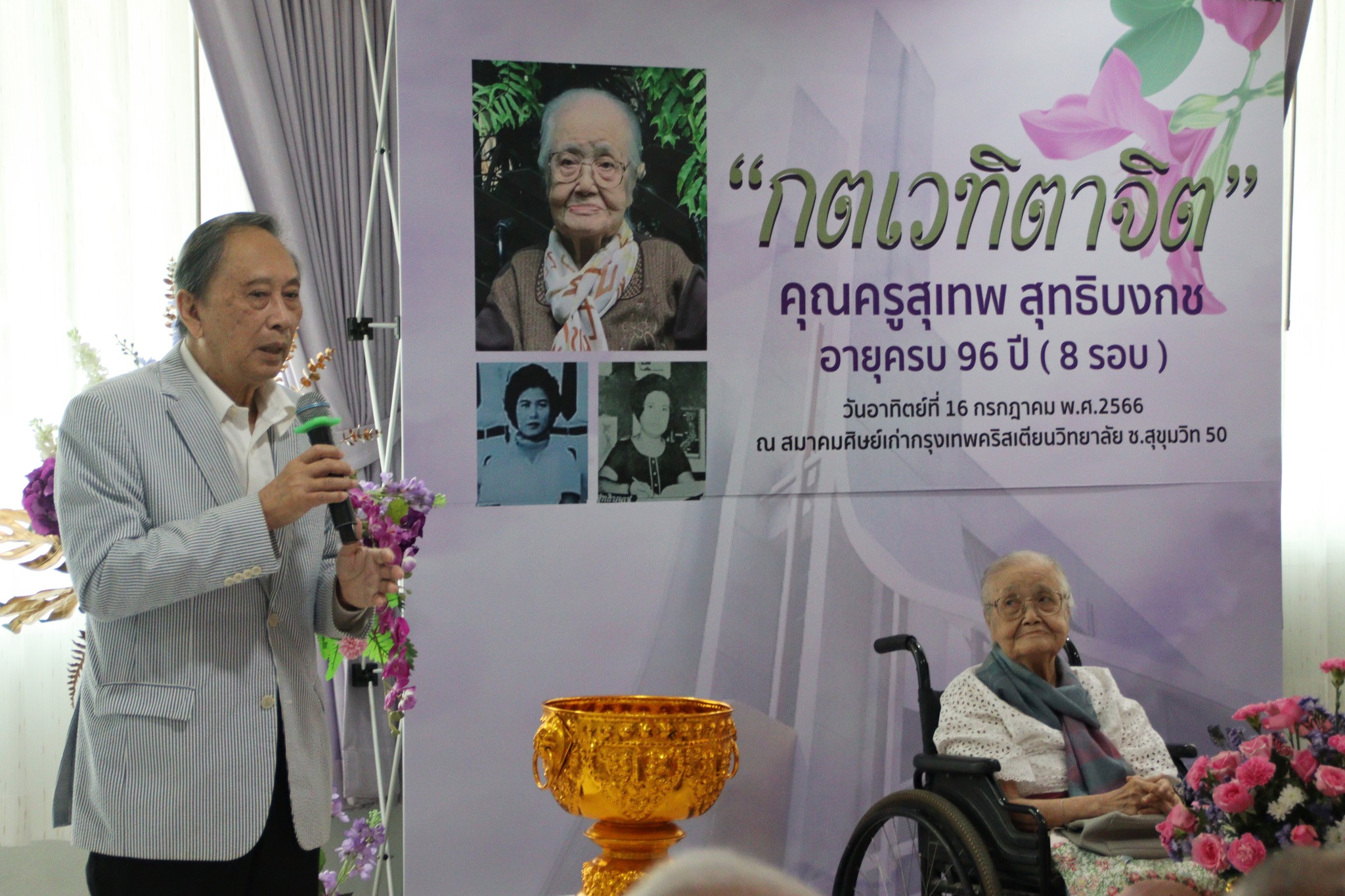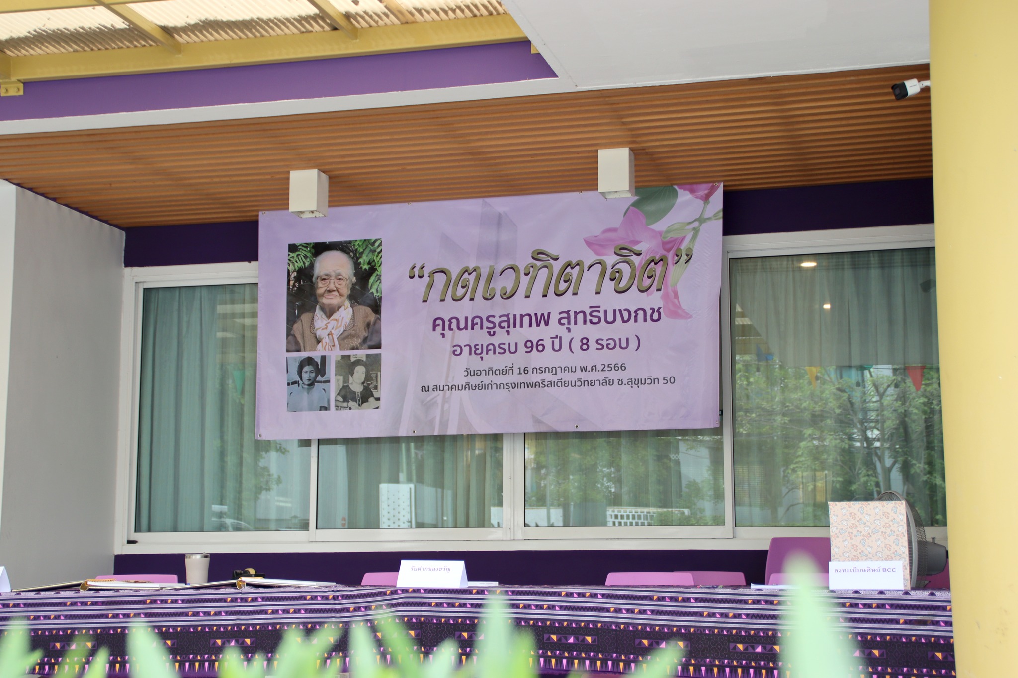เมื่อวานนี้ (16 กรกฎาคม) เป็นวันคล้ายวันเกิด คุณครูสุเทพ สุทธิบงกช ครบรอบอายุ 96 ปี โดย ดร.ธวัชชัย สุทธิบงกช BCC 112 บุตรชายคนโตของท่าน ได้จัดงาน 'กตเวทิตาจิต แด่คุณครูสุเทพ' ที่สมาคมศิษย์เก่ากรุงเทพคริสเตียนวิทยาลัย สุขุมวิท 50 โดยมีบุตรหลาน, ครูอาจารย์, ศิษย์เก่ารุ่นต่างๆ ที่คุณครูเคยสอนมาในอดีต และบุคคลอื่นๆ มาร่วมกันกันเป็นจำนวนมาก อาทิ อจ.บุญเกียรติ นิมมาลย์, คุณปลอดประสพ สุรัสวดี, คุณจิตติ รัชไชยบุญ, คุณวิรุฬ เตชะไพบูลย์, ผป.กู้ศักดิ์ สารกิติพันธ์, อจ.วราภรณ์ ทรัพย์สมบูรณ์ เป็นต้น โดยในโอกาสนี้ คุณประพันธ์ ปุษยไพบูลย์ นายกสมาคมศิษย์เก่าฯ ได้กล่าวต้อนรับ และกล่าวอวยพรวันเกิดแด่ ครูสุเทพ สุทธิบงกช ในนามสมาคมศิษย์เก่าฯ และศิษย์เก่าม่วงทองทั้งมวล